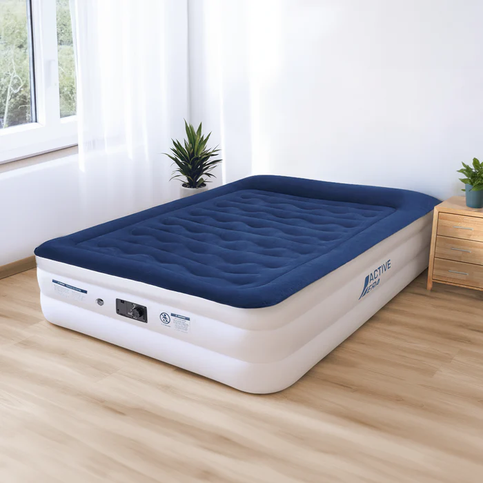 Prabangus Active Era pripučiamas čiužinys 2 asmenims su įmontuotu elektriniu kompresoriumi ir integruota pagalve stovyklavimui ir svečių lovai - 203 x 152 x 56 cm.