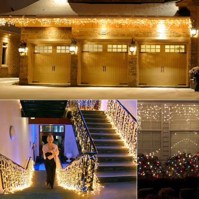 BrizLabs kalėdinės dekoracijos varveklių lemputės, 1000 LED lempučių, 8 režimai, atsparūs vandeniui, skirti langui, stogui, sodui, balkonui, terasai, vakarėliui, vestuvėms, šiltai balta spalva.25m ilgis.
