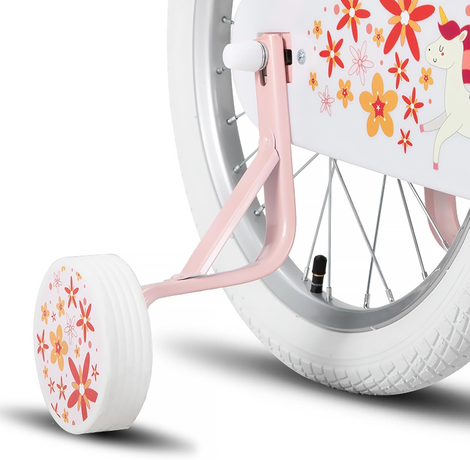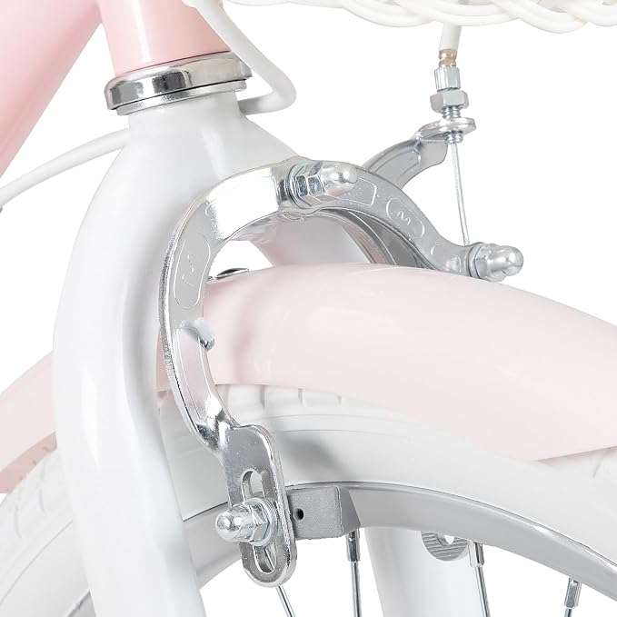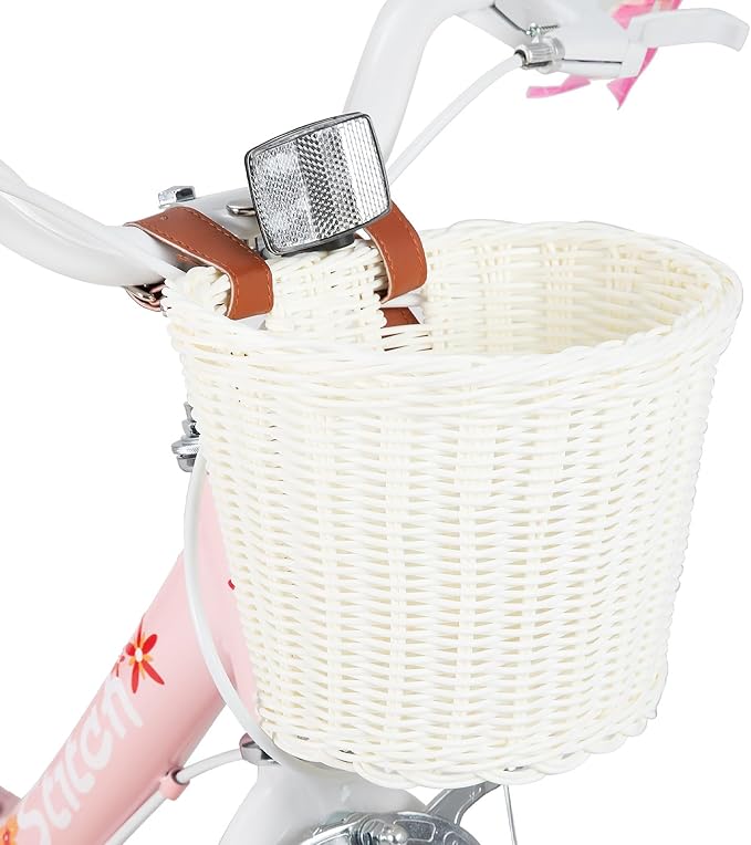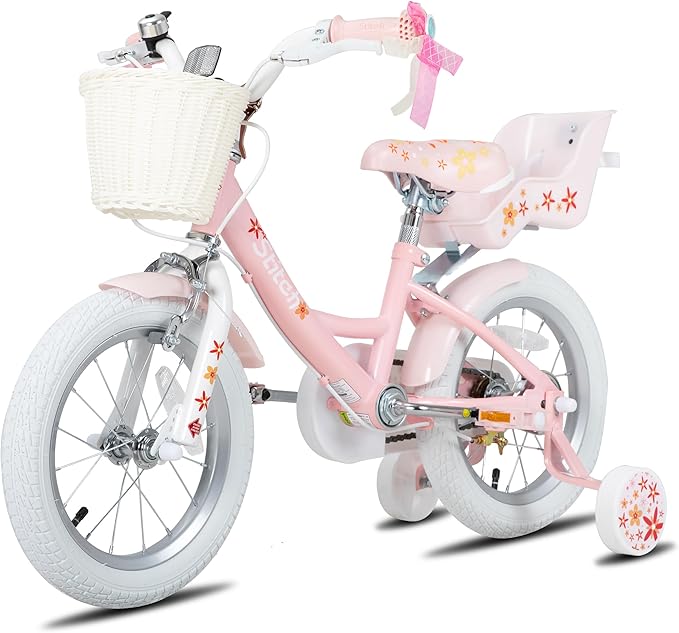 Joystar 16 colių vaikiškas dviratis 3-7 metų mergaitėms, su lėlės sėdyne ir atraminiais ratukais bei krepšeliu, juostelėmis ant rankenų ir atramine kojele