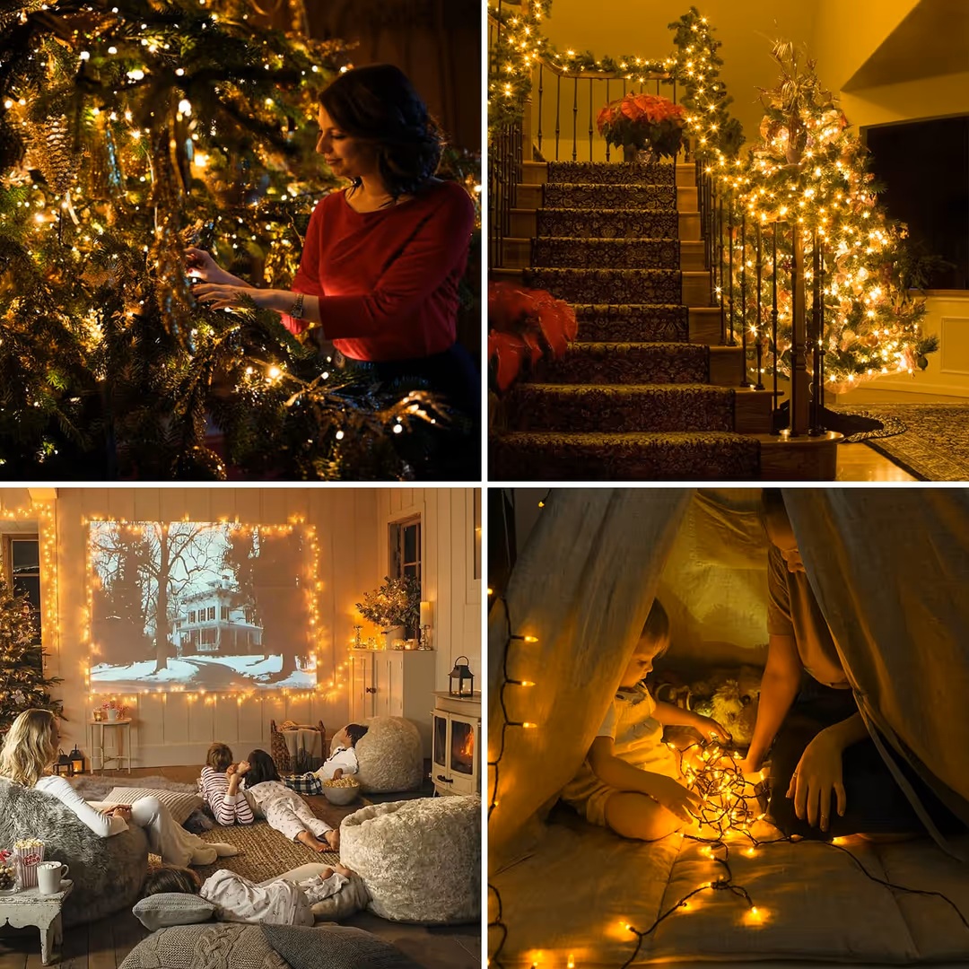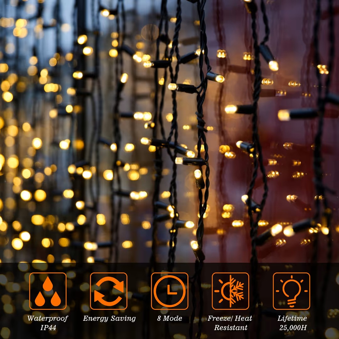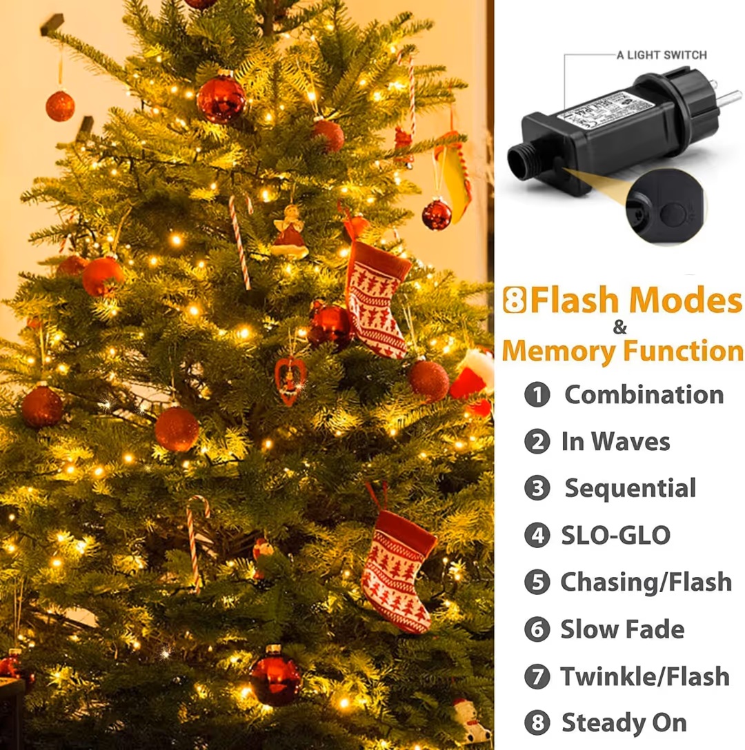 50M 2000 LED šviesos girlianda laukui, atspari vandeniui, 8 režimai – Šiltai balta spalva.