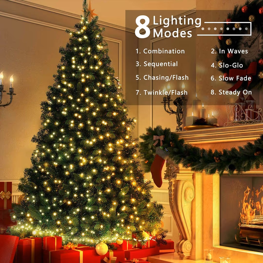 80M 800 LED šviesos girlianda laukui, atspari vandeniui, 8 režimai – Šiltai balta spalva.