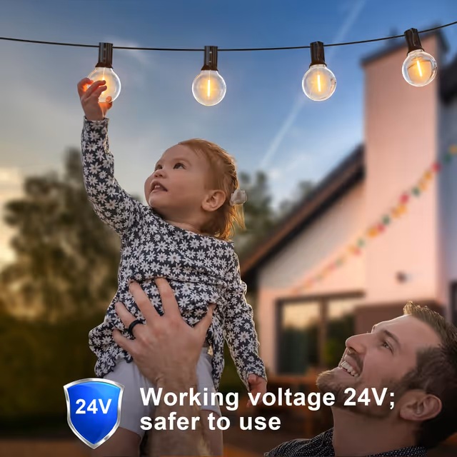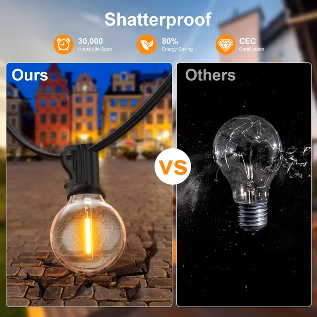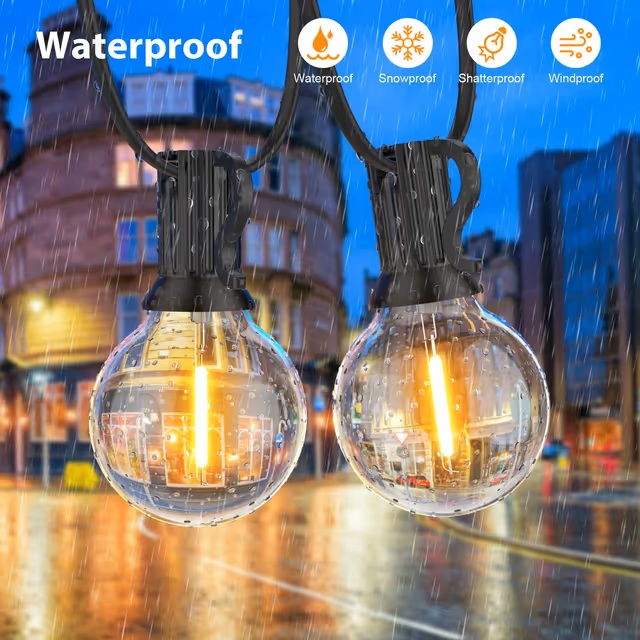 LED lauko terasos lemputės 45M, 75+2 G40 Lemputės atsparios vandeniui, šiltai balta spalva.